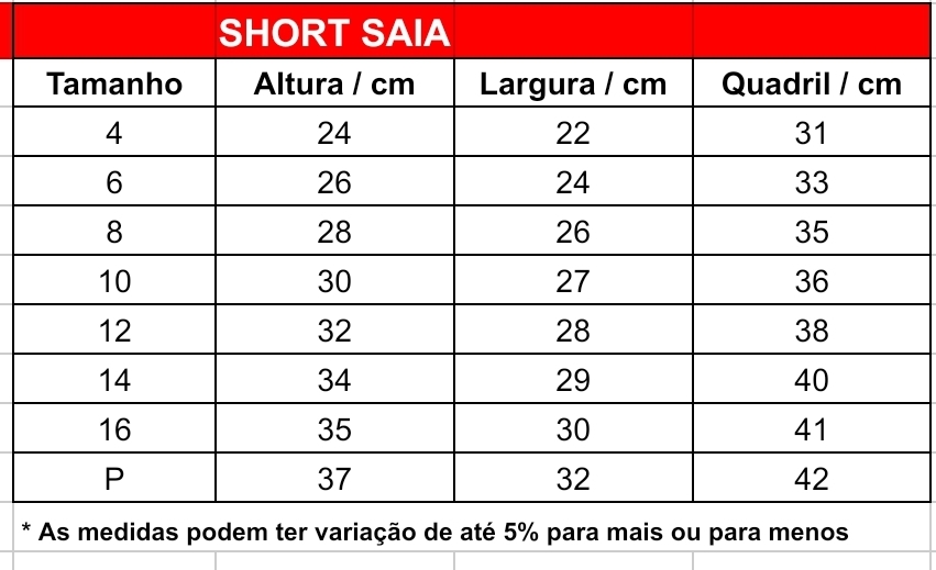 Tamanhos 04 ao GG