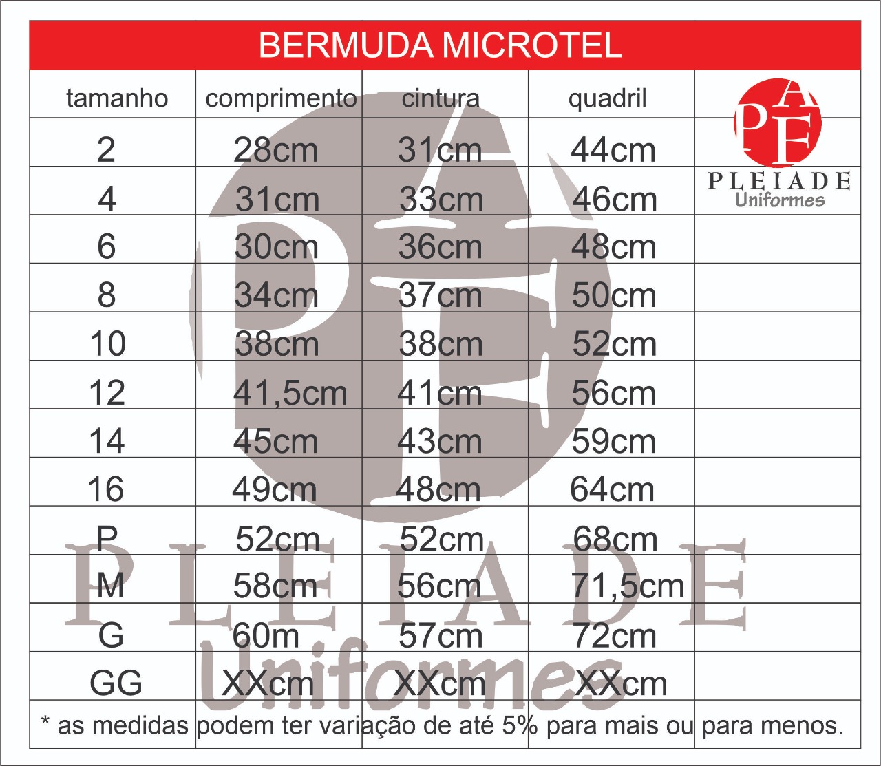 Tamanhos 04 ao GG