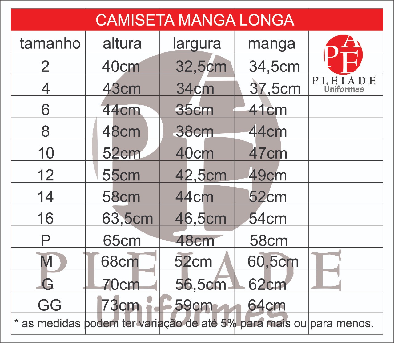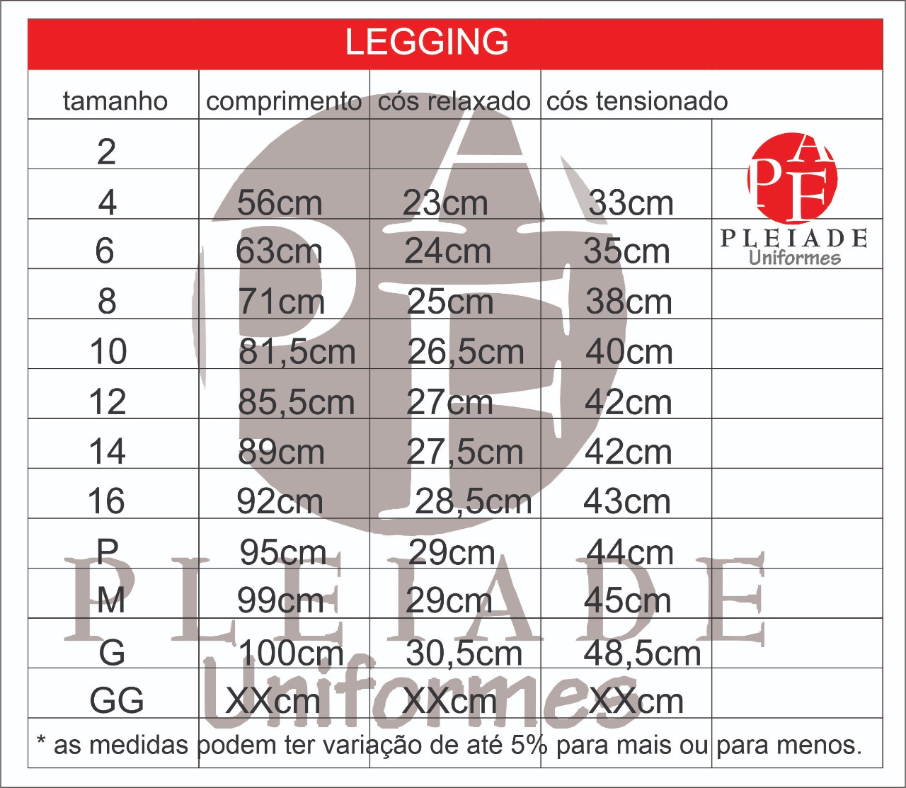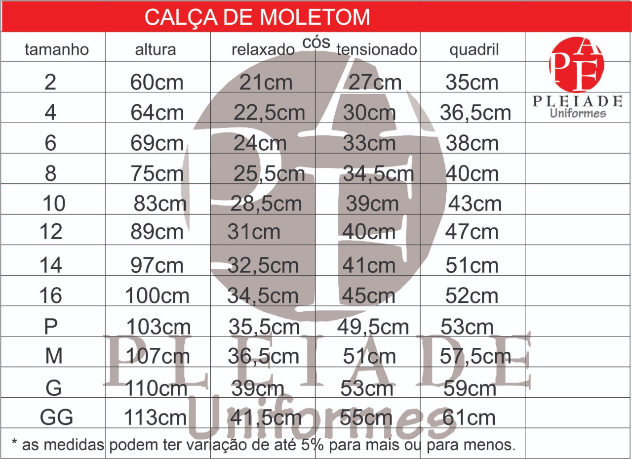 Tamanhos 04 ao GG
